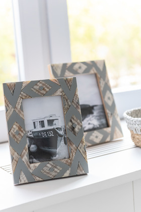 J-Line Fotokader Lily 10X15 Hout/Hoorn Wit/Blauwgrijs Small