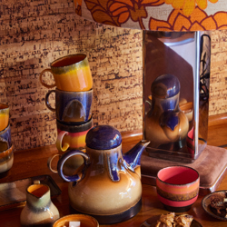 Ga terug in de tijd met onze Ceramics Coffee Collection uit de jaren 70, een levendig eerbetoon aan de koffiecultuur. Elk stuk in deze collectie – van de aardetinten mokken en schotels tot de grillige suiker- en melkkannen en statement koffiepotten – is vervaardigd met een knipoog naar het verleden, maar met modern vakmanschap dat duurzaamheid garandeert. Het rijke, warme palet en de groovy patronen creëren een visueel feest dat uitnodigt om in echte vintage-stijl van je koffie te genieten.