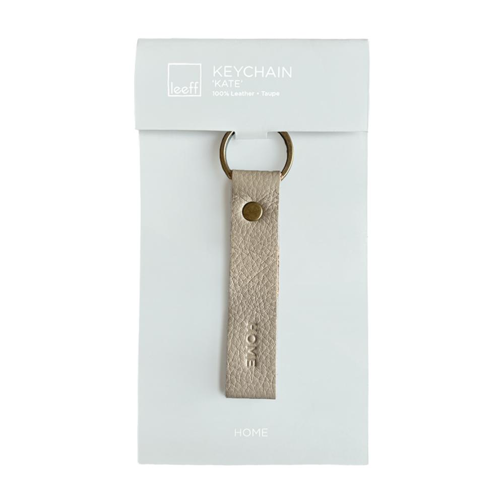 De leren sleutelhangers van Leeff zijn niet alleen een mooie toevoeging aan je sleutelbos, maar je kunt je sleutels dankzij de hanger ook veel sneller vinden in tas! Deze sleutelhanger Kate van Leeff is gemaakt van echt leer in de kleur taupe en heeft het woord ‘Home’ gegraveerd staan op de hanger. Zo leuk voor je eigen sleutels of om cadeau te geven aan iemand die je lief is! Ook verkrijgbaar in creme met de tekst ‘Shine’.